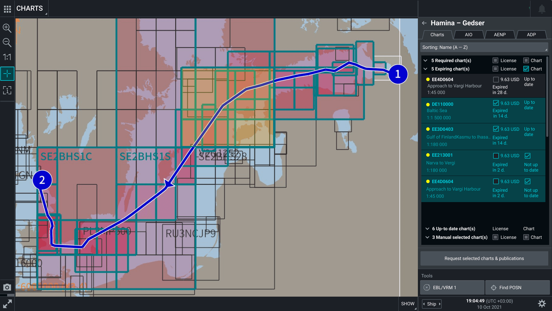 Так как во время плавания доступ к интернету на судах практически невозможен, перед выходом на маршрут капитану необходимо проверить все карты на (1) актуальность лицензии и (2) наличие обновлений.